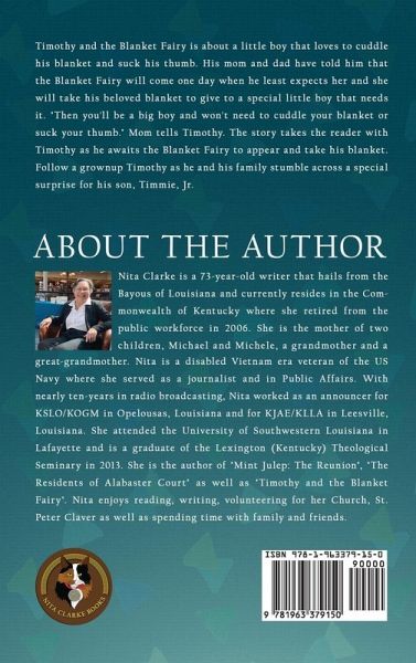 "Timothy and the Blanket Fairy" unfolds as a heartwarming narrative that revolves around the life of a little boy named Timothy. Within the cozy folds of his cherished blanket and the solace of his thumb-sucking habit, Timothy discovers a source of comfort. His parents, introducing the concept of the Blanket Fairy, promise him that one day, when he least expects it, this magical entity will appear and spirit away his treasured blanket to gift it to a child in need. "Then you'll be a big boy and won't need to cuddle your blanket or suck your thumb," reassures his mom, setting the stage for a poignant journey of growth. The narrative deftly captures the palpable anticipation and emotional landscape of young Timothy as he eagerly anticipates the mysterious Blanket Fairy. Readers become engrossed in Timothy's endearing journey, sharing in the suspense and curiosity surrounding the awaited magical moment. As the tale progresses, a grown-up Timothy takes center stage, and the reader is treated to a heartwarming surprise awaiting his own son, Timmie, Jr. The introduction of this generational theme adds depth to the narrative, portraying the cyclical nature of life and the passing down of cherished traditions. "Timothy and the Blanket Fairy" transcends being merely a story about growing up; it metamorphoses into a celebration of love, family, and the profound connections that span across generations. The narrative artfully highlights the enduring impact of childhood rituals and the boundless joy derived from creating special moments for those we hold dear. With its enchanting storyline and touching themes, this book is poised to captivate both children and their parents, creating a timeless sense of warmth and nostalgia.