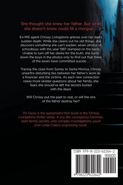 Mysterious photos. Missing diaries. Family secrets with fatal consequences. Chrissy Livingstone grieves over her father's sudden death. While she cleans out his old things, she discovers something she can't explain: seven school-style photos of boys with the year 1987 stamped on the back. Unable to turn off her intrigue, she sets out to find them only to discover that three of the seven have committed suicide... Tracing the clues from Surrey to Santa Monica, Chrissy unearths disturbing ties between her father's work as a financier and the victims. As each new connection raises more sinister questions about her family, she fears she should've left the secrets buried with the dead. Will Chrissy put the past to rest, or will the sins of the father destroy her family? Tin Men is the first brilliant and captivating novel featuring Chrissy Livingstone by master storyteller Linda Coles. "Move over Agatha Christie, there's a new dame in town." Amazon reviewer. Perfect for fans of Dervla McTiernan, Jo Spain, Sam Blake, Carmel Harrington, Sinead Crowley and Graham Masterton.