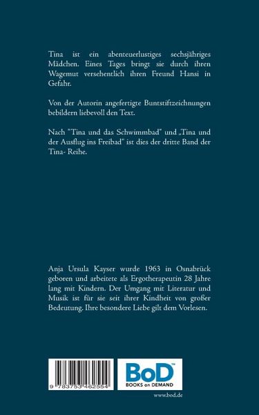 Anja Ursula Kayser wurde 1963 in Osnabrück geboren. Nach ihrem Abitur absolvierte sie eine Ausbildung zur Ergotherapeutin und arbeitete in unterschiedlichen Einrichtungen 28 Jahre lang mit Kindern im Kindergarten- und Grundschulalter. Gemeinsam mit ihrem Mann verfasste sie das Fachbuch "Spiel, Sielen, Therapie" und verschiedene Fachartikel zum gleichen Thema. Ihre Liebe zur Literatur besteht schon seit ihrer Kindheit und findet Ausdruck nicht nur im Lesen sondern auch im Vorlesen von Büchern. In diesem Zusammenhang entstand dieses Buch, das sie liebevoll mit eigenen Buntstiftzeichnungen bebildert hat. Nach "Tina und das Schwimmbad" und "Tina und der Ausflug ins Freibad" ist dieses Buch der dritte Band der Tina- Reihe.