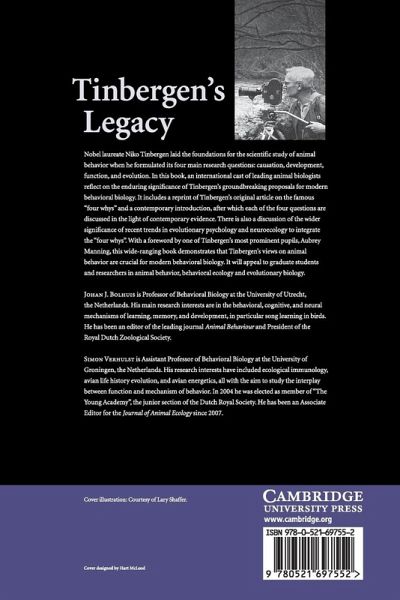 1. On aims and methods of ethology N Tinbergen; 2. Tinbergen's four questions and contemporary behavioural biology Jerry A. Hogan and Johan J. Bolhuis; 3. Causation: the study of behavioural mechanisms Jerry A. Hogan; 4. Tinbergen's fourth question. Ontogeny: sexual and individual differentiation David Crews and Ton Groothuis; 5. The development of behaviour: trends since Tinbergen (1963) Jerry A. Hogan and Johan J. Bolhuis; 6. The study of function in behavioural ecology Innes Cuthill; 7. The evolution of behaviour, and integrating it towards a complete and correct understanding of behavioural biology Michael J. Ryan; 8. Do ideas about function help in the study of causation? David F. Sherry; 9. Function and mechanism in neuroecology: looking for clues Johan J. Bolhuis.