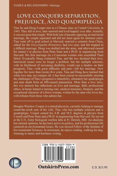 "Doug Cooper's homage to his wife ... is a story about the power of love to overcome cultural taboos, through persistence and patience, and to triumph over a near-fatal illness and daunting physical disability. It is also a celebration of optimism over despair by two people passionately committed to each other 'for better or worse, in good times and bad, in sickness and in health.....' Tina entered the critical care unit of Orange Regional Medical Center because of a catastrophic illness. I was part of the intensivist team providing her care through her 100-day hospital ordeal.... Doug tirelessly directed the attention of the health care team to seemingly trivial aspects of her care, asking detailed questions and demanding satisfactory answers, even occasionally suggesting changes in her care plan.... What I did not initially realize was that Doug's persistence was improving his wife's care. I began to marvel at the tenderness he lavished on Tina.... Eventually, Tina left the hospital and went home to a cocoon of nurses, catheters, and ventilators, and I saw her several times a year in my office. Their mutual affection seemed to grow stronger with time and was uplifting to watch, given the relentless burdens Tina's illness imposed on both of them. Doug dedicates this book to Tina, his "good soldier," but in a larger sense it is also a tribute to his powerful advocacy for her survival. I believe their love saved them both. My participation in Tina's care made me a better physician and provided me with one of the most rewarding experiences of my professional career." From the Foreword by Richard F. Walker, MD, FCCP. This is a love story that is also a challenge to the idea that others can correctly judge a patient's eventual quality of life in order to determine the degree of medical intervention that is appropriate in a life-threatening situation. This is a tribute to a brave woman and to all of those who helped her during her most desperate time and thereafter. It is a tribute, also, to the power of love between a man and a woman that has sustained them through separation, societal prejudice, and her seven years as a quadriplegic, on a ventilator, and fed through a gastric tube, with round-the-clock nursing care at home. Love and marriage, family, friendships, trust, faith, hope, finances and health insurance, home nursing care management --- all are covered, often with a touch of humor.