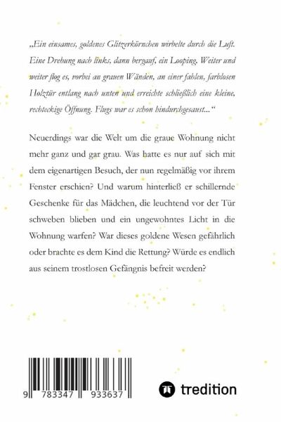 "Ein einsames, goldenes Glitzerkörnchen wirbelte durch die Luft. Eine Drehung nach links, dann bergauf, ein Looping. Weiter und weiter flog es, vorbei an grauen Wänden, an einer fahlen, farblosen Holztür entlang nach unten und erreichte schließlich eine kleine, rechteckige Öffnung. Flugs war es schon hindurchgesaust..." Neuerdings war die Welt um die graue Wohnung nicht mehr ganz und gar grau. Was hatte es nur auf sich mit dem eigenartigen Besuch, der nun regelmäßig vor ihrem Fenster erschien? Und warum hinterließ er schillernde Geschenke für das Mädchen, die leuchtend vor der Tür schweben blieben und ein ungewohntes Licht in die Wohnung warfen? War dieses goldene Wesen gefährlich oder brachte es dem Kind die Rettung? Würde es endlich aus seinem trostlosen Gefängnis befreit werden? Teil 2 der Reihe "Tintensee". Teil 1: "Tintensee - Die Graue Wohnung"