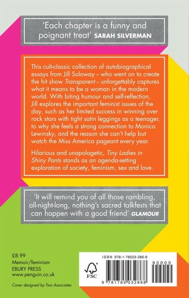 The unforgettable collection of autobiographical essays from Jill Soloway the creator and director of Transparent and Emmy-nominated writer for Six Feet Under. When Jill was just thirteen she and her best friend donned the tightest satin pants they could find poufed up their hair and squeezed into Candies heels then headed to downtown Chicago in search of their one-and-only true loves forever: the members of whichever rock band was touring through town. Never mind that both girls still had braces coke-bottle-thick glasses and had only just bought their first bras...they were fabulous they felt beautiful they were tiny ladies in shiny pants. But as an all grown up and a successful writer and producer Jill came to look back on her tiny self and share her shiny tales with fondness absurdity and obsessive-compulsive attention to even the most embarrassing details. From the highly personal (conflating her own loss of virginity and the Kobe Bryant accusations) to the political (what she has in common with Monica Lewinsky and Chandra Levy) to the outrageously Los Angelean (why women wear huge diamonds and what they must do to get them) Tiny Ladies in Shiny Pants is a classic genre-defying combination of personal essay and memoir or a hilarious unruly and unapologetic evaluation of society religion sex and love.