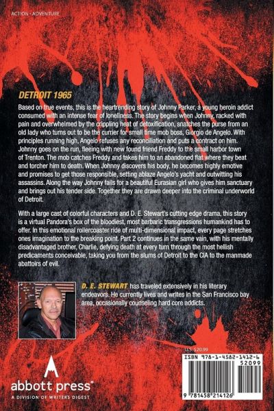 Detroit 1965 Based on true events, this is the heartrending story of Johnny Parker, a young heroin addict consumed with an intense fear of loneliness. The story begins when Johnny, racked with pain and overwhelmed by the crippling heat of detoxification, snatches the purse from an old lady who turns out to be the currier for small time mob boss, Giorgio de Angelo. With principles running high, Angelo refuses any reconciliation and puts a contract on him. Johnny goes on the run, fleeing with new found friend Freddy to the small harbor town of Trenton. The mob catches Freddy and takes him to an abandoned flat where they beat and torcher him to death. When Johnny discovers his body, he becomes highly emotive and promises to get those responsible, setting ablaze Angelo's yacht and outwitting his assassins. Along the way Johnny falls for a beautiful Eurasian girl who gives him sanctuary and brings out his tender side. Together they are drawn deeper into the criminal underworld of Detroit. With a large cast of colorful characters and D. E. Stewart's cutting edge drama, this story is a virtual Pandora's box of the bloodiest, most barbaric transgressions humankind has to offer. In this emotional rollercoaster ride of multi-dimensional impact, every page stretches ones imagination to the breaking point. Part 2 continues in the same vain, with his mentally disadvantaged brother, Charlie, defying death at every turn through the most hellish predicaments conceivable, taking you from the slums of Detroit to the CIA to the manmade abattoirs of evil.