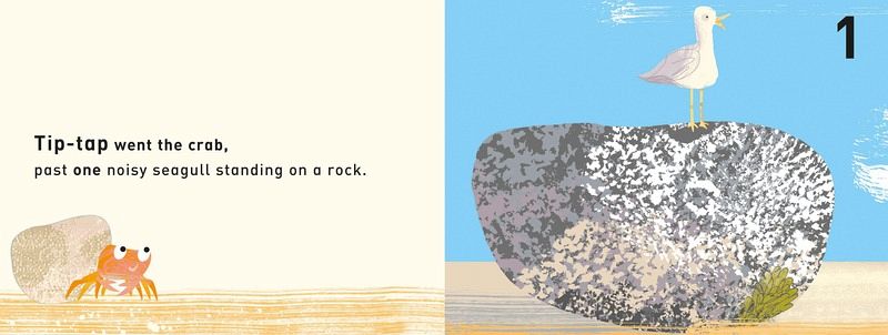 TIP TAP Went the Crab is a bold and beautiful introduction to numbers and counting by Tim Hopgood, creator of the bestselling WOW! Said the Owl. When a curious little crab tip-taps out of her rock pool to explore the big blue sea, she discovers a world full of wonderful creatures. But after she's counted everything from one noisy seagull to nine silent sharks, the little crab soon realizes that her very own rock pool is the most amazing place of all. She tip-taps happily home . . . closely followed by her ten baby crabs! Preschoolers will love joining in with the TIP TAPs in this board book and a final activity spread about counting makes this book perfect for sharing at story time. Discover more from Tim Hopgood, the Booktrust award-winning illustrator of WOW! Said The Owl, a first book of colours, and HOORAY for Hoppy, a first book of senses.