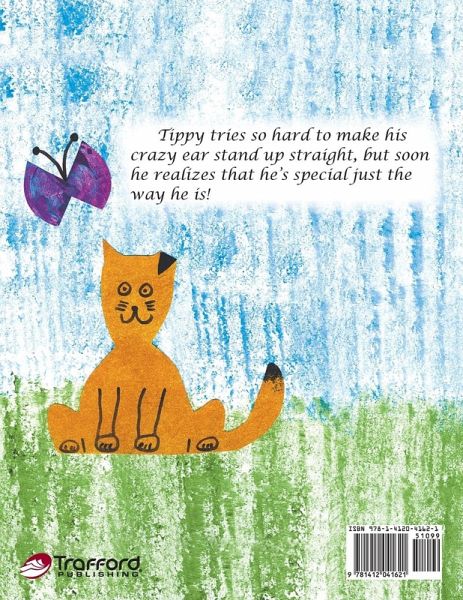 This book is about a kitten named Tippy. He feels badly because he doesn't look like his brother and sister. One of his ears is nice and straight, but the other one is tipped over. He tries desperately to hide his ear and to make it stand up straight. He uses hair gel, wears a wig, even attaches it to a clotheslines, but nothing works! Little does he know that it is his "tippy" ear that makes him so special and unique! When a girl decides to adopt Tippy, suddenly the others try to make their ears "tippy" too! Children can relate to the humorous story of a kitten who feels different than others. As Tippy discovers that his uniqueness makes him special, children also learn that it's okay to be different. They find they are special just the way they are.