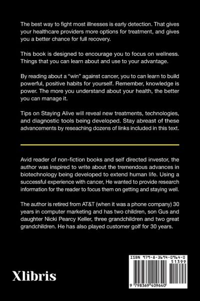 The best way to fight most illnesses is early detection. That gives your healthcare providers more options for treatment, and gives you a better chance for full recovery. This book is designed to encourage you to focus on wellness. Things that you can learn about and use to your advantage. By reading about a "win" against cancer, you to can learn to build powerful, positive habits for yourself. Remember, knowledge is power. The more you understand about your health, the better you can manage it. Tips on Staying Alive will reveal new treatments, technologies, and diagnostic tools being developed. Stay abreast of these advancements by reseaching dozens of links included in this text.