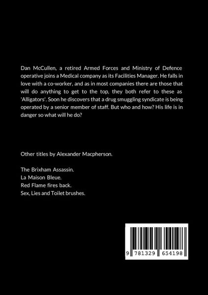 Dan McCullen, a retired Armed Forces and Ministry of Defence operative joins a Medical company, here he falls in love with a co-worker. As in most companies there are those who will stop at nothing to get to the top, they both refer to these as 'Alligators'. Soon, he discovers there is a drug smuggling syndicate operating within the organization being run by a senior member of staff. But who? And how? Suddenly his life is in danger.