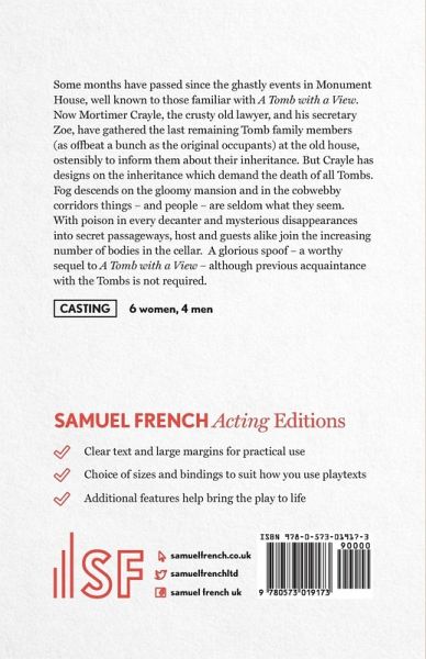 Comedy Thriller Norman Robbins Characters: 4 males, 6 females Scenery: Interior Months have passed since the ghastly events in Monument House occurred that are related in A Tomb with a View. Mortimer Crayle, the crusty lawyer, and his secretary have gathered the remaining members of the Tomb family at the house, ostensibly to inform this off beat bunch about their inheritance. In reality, Crayle has designs on the estate that necessitate eliminating all Tombs. Fog descends on the gloomy mansion. In the cobwebby corridors things and people are seldom what they seem. Poison is in every decanter and there are mysterious disappearances. Hosts and guests join the rising pile of bodies in the cellar. Previous acquaintance with the Tombs is not required to enjoy this glorious spoof.