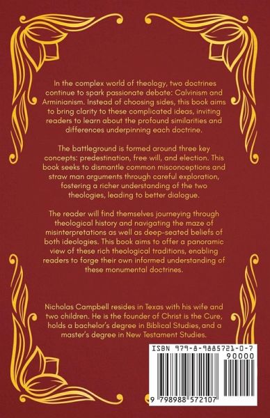 In the complex world of theology, two doctrines continue to spark passionate debate: Calvinism and Arminianism. Instead of choosing sides, this book aims to bring clarity to these complicated ideas, inviting readers to learn about the profound similarities and differences underpinning each doctrine. The battleground is formed around three key concepts: predestination, free will, and election. This book seeks to dismantle common misconceptions and straw man arguments through careful exploration, fostering a richer understanding of the two theologies, leading to better dialogue. The reader will find themselves journeying through theological history and navigating the maze of misinterpretations as well as deep-seated beliefs of both ideologies. This book aims to offer a panoramic view of these rich theological traditions, enabling readers to forge their own informed understanding of these monumental doctrines.