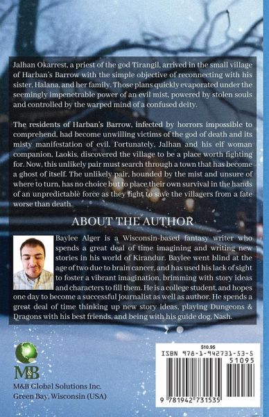 Jalhan Okarrest, a priest of the god Tirangil, arrived in the small village of Harban's Barrow with the simple objective of reconnecting with his sister, Halana, and her family. Those plans quickly evaporated under the seemingly impenetrable power of an evil mist, powered by stolen souls and controlled by the warped mind of a confused deity. The residents of Harban's Barrow, infected by horrors impossible to comprehend, had become unwilling victims of the god of death and its misty manifestation of evil. Fortunately, Jalhan and his elf woman companion, Laokis, discovered the village to be a place worth fighting for. Now, this unlikely pair must search through a town that has become a ghost of itself. The unlikely pair, hounded by the mist and unsure of where to turn, has no choice but to place their own survival in the hands of an unpredictable force as they fight to save the villagers from a fate worse than death.