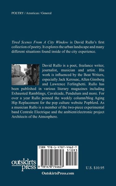 Tired Scenes From A City Window is David Rullo's first collection of poetry. Rullo spent close to a decade writing and selecting the poetry in Tired Scenes From A City Window. Tired Scenes From A City Window is a reflection of urban life. Rullo tells his story in a voice all his own. His influences include Kerouac, Ginsberg, Ferlinghetti as well as other Beat writers. In the tradition of most Beat Poetry Rullo's tales reflect from the outside and on the fringes of society. Tired Scenes From A City Window is a collection of poetry you'll read from cover to cover again and again.