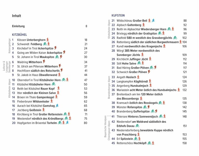 Die Routen reichen von einfachen Wanderungen über Mountainbike-Touren bis zu anspruchsvollen Hoch- und Skitouren. Es geht auf fünf Dreitausender und diesmal ist auch eine Kletterpartie dabei, denn der anspruchsvollste Summit, jener von Kufstein, ist nur über den Kopftörlgrat, eine Klettertour im unteren 4. Schwierigkeitsgrad, erreichbar. Neu im dritten Band der Summit-Reihe ist der Fokus auf die öffentliche Anreise.