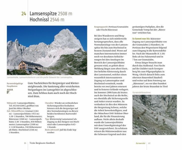 Alle Touren wurden beschrieben von den beiden Top-Experten Kurt Pokos und Franz Hüttl, die als Buchautoren und Bergredakteure der "Tiroler Tageszeitung" wohlbekannt sind. Die Bandbreite reicht von den Gebirgszügen Nordtirols, von den Lechtaler Alpen bis zu den Kitzbüheler Bergen, mit lohnenswerten Abstechern nach Südtirol und Bayern. Für jeden Geschmack ist etwas dabei: leichte Hütten- und Genusswanderungen, Höhenwege, Gipfeltouren und Klettersteige bieten eine reiche Auswahl an Touren.