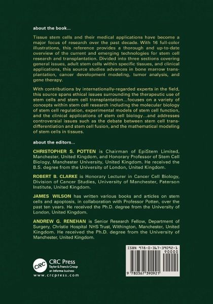 Tissue stem cells and their medical applications have become a major focus of research over the past decade. With 16 full-color illustrations, this reference provides a thorough and up-to-date overview of the current and emerging technologies for stem cell research and transplantation. Divided into three sections covering general issues, adult stem cells within specific tissues, and clinical applications, this source studies advances in bone marrow transplantation, cancer development modeling, tumor analysis, and gene therapy.