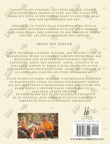Based on the folktale The Little Red Hen, Tita la Gallinita finds grains of corn. She has a plan for them, but none of her friends want to help her. What will her friends miss out on? Basado en el cuento La Gallinita Roja, Tita La Gallinita encuentra granos de elote. Ella tiene un plan para ellos, pero ninguno de sus amigos le quiere ayudar. ¿De qué se perderán sus amigos?