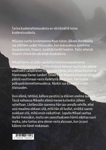 Tarina kuolemattomuudesta on väistämättä tarina kuolevaisuudesta. Miljoona vuotta tuntemamme Maan tuhon jälkeen ihmiskunta saa yllättäen uuden tilaisuuden, kun avaruudessa ajelehtiva muukalaislaji, titaanit, herättää heidät henkiin. Paitsi etteivät titaanit sittenkään liene muukalaisia. Mikael Corvin on jatko-opiskelija keskieurooppalaisessa yliopistokaupungissa. Tyttöystävänsä Helenan kautta hän pääsee osalliseksi salaperäisen Instituutin työstä, jota johtaa futuristi ja filantrooppi Xavier Landorf. Ennen kuin Mikael kuitenkaan ehtii päästä nauttimaan vasta löydetystä onnestaan, hän kuolee…mehr