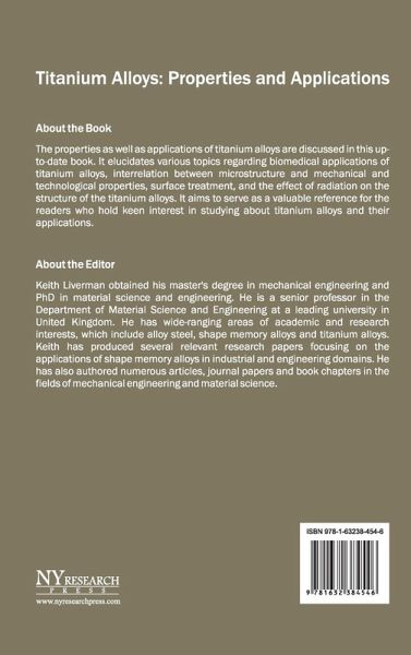 The properties as well as applications of titanium alloys are discussed in this up-to-date book. It elucidates various topics regarding biomedical applications of titanium alloys, interrelation between microstructure and mechanical and technological properties, surface treatment, and the effect of radiation on the structure of the titanium alloys. It aims to serve as a valuable reference for the readers who hold keen interest in studying about titanium alloys and their applications.