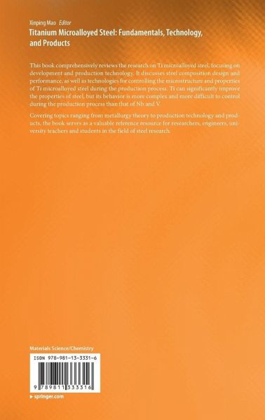 Introduction.- Chemical metallurgy theory on Ti microalloyed steel.- Physical metallurgy theory on Ti microalloyed steel-dissolving and precipitation of Ti containing phases.- Physical metallurgy theory on Ti microalloyed steel-recrystallization and phase transformation.- Technology of production, microstructure and property control of Ti microalloyed steel.- Design, development and application of Timicroalloyed steel.