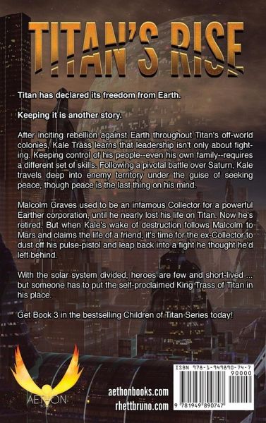 Titan has declared its freedom from Earth. Keeping it is another story. After inciting rebellion against Earth throughout Titan's off-world colonies, Kale Trass learns that leadership isn't only about fighting. Keeping control of his people--even his own family--requires a different set of skills. Following a pivotal battle over Saturn, Kale travels deep into enemy territory under the guise of seeking peace, though peace is the last thing on his mind. Malcolm Graves used to be an infamous Collector for a powerful Earther corporation, until he nearly lost his life on Titan. Now he's retired. But when Kale's wake of destruction follows Malcolm to Mars and claims the life of a friend, it's time for the ex-Collector to dust off his pulse-pistol and leap back into a fight he thought he'd left behind. With the solar system divided, heroes are few and short-lived ... but someone has to put the self-proclaimed King Trass of Titan in his place.