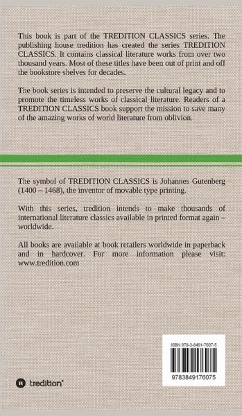 This book (hardcover) is part of the TREDITION CLASSICS. It contains classical literature works from over two thousand years. Most of these titles have been out of print and off the bookstore shelves for decades. The book series is intended to preserve the cultural legacy and to promote the timeless works of classical literature. Readers of a TREDITION CLASSICS book support the mission to save many of the amazing works of world literature from oblivion. With this series, tredition intends to make thousands of international literature classics available in printed format again worldwide.