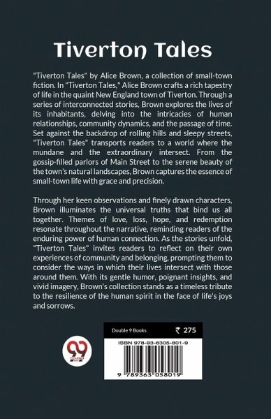 "Tiverton Tales" by Alice Brown, a collection of small-town fiction. In "Tiverton Tales," Alice Brown crafts a rich tapestry of life in the quaint New England town of Tiverton. Through a series of interconnected stories, Brown explores the lives of its inhabitants, delving into the intricacies of human relationships, community dynamics, and the passage of time. Set against the backdrop of rolling hills and sleepy streets, "Tiverton Tales" transports readers to a world where the mundane and the extraordinary intersect. From the gossip-filled parlors of Main Street to the serene beauty of the town's natural landscapes, Brown captures the essence of small-town life with grace and precision. Through her keen observations and finely drawn characters, Brown illuminates the universal truths that bind us all together. Themes of love, loss, hope, and redemption resonate throughout the narrative, reminding readers of the enduring power of human connection. As the stories unfold, "Tiverton Tales" invites readers to reflect on their own experiences of community and belonging, prompting them to consider the ways in which their lives intersect with those around them. With its gentle humor, poignant insights, and vivid imagery, Brown's collection stands as a timeless tribute to the resilience of the human spirit in the face of life's joys and sorrows.