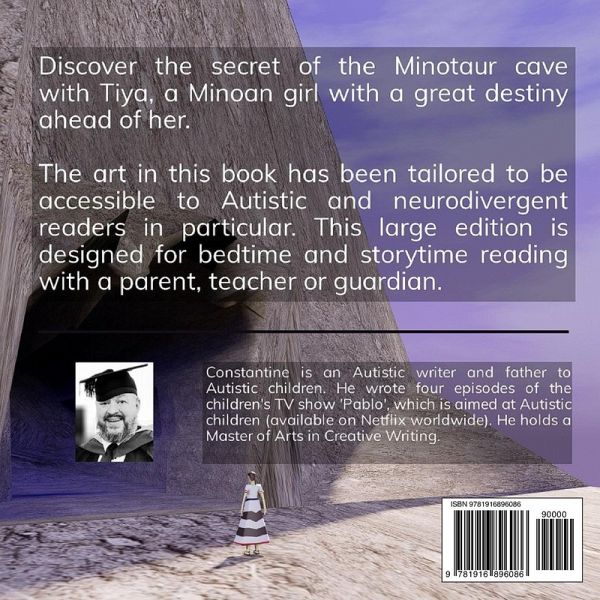 Discover the secret of the Minotaur cave with Tiya, a Minoan girl with a great destiny before her. This is a picture book/bedtime book for children of all ages, though it has been made with Autistic and neurodiverse children in mind. The artwork has been designed in such a way that readers on the spectrum, by and large, find it easy to process