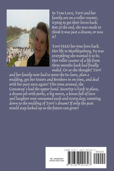 It wasn't all a dream! Terri HAD her true love back. Her life in Markleysburg, Pa was everything she wanted it to be. Her roller coaster of a life from three months back had finally ended. Or so she thought! Terri and her family now had to meet the In-laws, plan a wedding, get her Sisters and Brothers in on time, and deal with her past once again! This time around, the Conaway's had the upper hand. Security is back in place, a dream job with perks, a big move, a house full of love and laughter now consumed each and every day; counting down to the wedding of Terri's dream! If only the past would stay locked up so the future can grow!