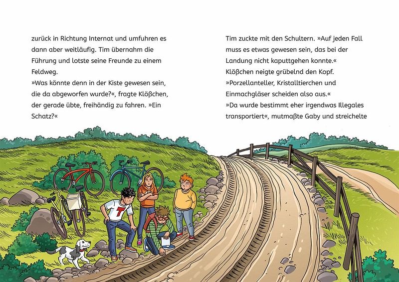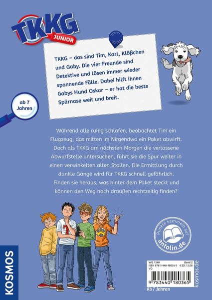 TKKG - das sind Tim, Karl, Klößchen und Gaby. Die vier Freunde lösen mutig jeden Fall und stürzen sich in spannende Abenteuer. Dabei darf Hund Oskar natürlich nicht fehlen. Wo ist denn die Kiste? Sie kann doch nicht einfach verschwinden, oder? TKKG haben selbst mitbekommen, wie ein Flugzeug mitten in der Nacht eine Kiste abgeworfen hat. Sie müsste noch hinter dem Internat liegen. Am nächsten Tag untersuchen Tim, Karl, Klößchen und Gaby die Abwurfstell ganz genau. Fehlanzeige! Ein ziemlich großer Abdruck im Boden ist das Einzige, was sie finden. Sehr verdächtig! Die Neugier der Detektive ist geweckt. Die Ermittlungen führen sie ins Salamander-Tal. Liegt tief im Stollen die Auflösung des mysteriösen Falles? Ein spannendes Abenteuer mit einem coolen Detektiv-Team und vielen farbigen Illustrationen.