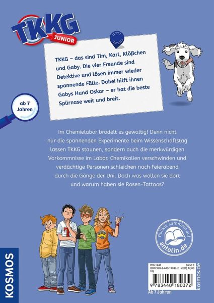 Ein mysteriöser Fall hält TKKG in Atem: Aus einem Labor wurden gefährliche Chemikalien gestohlen, und im Museum sorgen plötzlich Stinkbomben für Chaos. Wer steckt dahinter, und was haben die Täter vor? Während Tim, Karl, Klößchen und Gaby den Spuren folgen, entdecken sie ein weiteres Verbrechen - eine wertvolle Münze ist verschwunden! Stehen die Diebstähle in Verbindung? Mit viel Köpfchen, Mut und ihrem Spürsinn kommen TKKG und Hund Oskar den Tätern auf die Schliche. Ein rasanter Kriminalfall voller Spannung, Humor und coolen vierfarbigen Illustrationen!TKKG - das sind Tim, Karl, Klößchen und Gaby. Die vier Freunde lösen mutig jeden Fall und stürzen sich in spannende Abenteuer. Dabei darf Hund Oskar natürlich nicht fehlen.