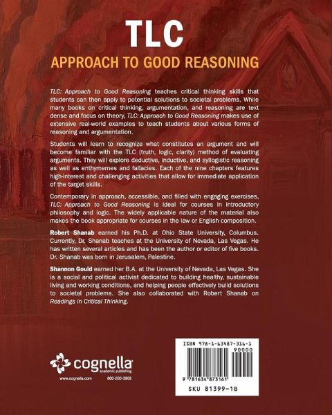 TLC: Approach to Good Reasoning teaches critical thinking skills that students can then apply to potential solutions to societal problems. While many books on critical thinking, argumentation, and reasoning are text dense and focus on theory, TLC: Approach to Good Reasoning makes use of extensive real-world examples to teach students about various forms of reasoning and argumentation. Students will learn to recognize what constitutes an argument and will become familiar with the TLC (truth, logic, clarity) method of evaluating arguments. They will explore deductive, inductive, and syllogistic reasoning as well as enthymemes and fallacies. Each of the nine chapters features high-interest and challenging activities that allow for immediate application of the target skills. Contemporary in approach, accessible, and filled with engaging exercises, TLC: Approach to Good Reasoning is ideal for courses in introductory philosophy and logic. The widely applicable nature of the material also makes the book appropriate for courses in the law or English composition.