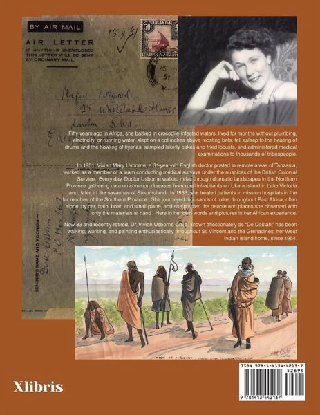 Fifty years ago in Africa, she bathed in crocodile-infested waters, lived for months without plumbing, electricity, or running water, slept on a cot inches above roosting bats, fell asleep to the beating of drums and the howling of hyenas, sampled lakefly cakes and fried locusts, and administered medical examinations to thousands of tribespeople. In 1951, Vivian Mary Usborne, a 31-year-old English doctor posted to remote areas of Tanzania, worked as a member of a team conducting medical surveys under the auspices of the British Colonial Service. Every day, Doctor Usborne walked miles through dramatic landscapes in the Northern Province gathering data on common diseases from rural inhabitants on Ukara Island in Lake Victoria and, later, in the savannas of Sukumuland. In 1953, she treated patients in mission hospitals in the far reaches of the Southern Province. She journeyed thousands of miles throughout East Africa, often alone, by car, train, boat, and small plane, and she painted the people and places she observed with only the materials at hand. Here in her own words and pictures is her African experience. Now 83 and recently retired, Dr. Vivian Usborne Child, known affectionately as "De Doktah," has been working, walking, and painting enthusiastically throughout St. Vincent and the Grenadines, her West Indian island home, since 1954.