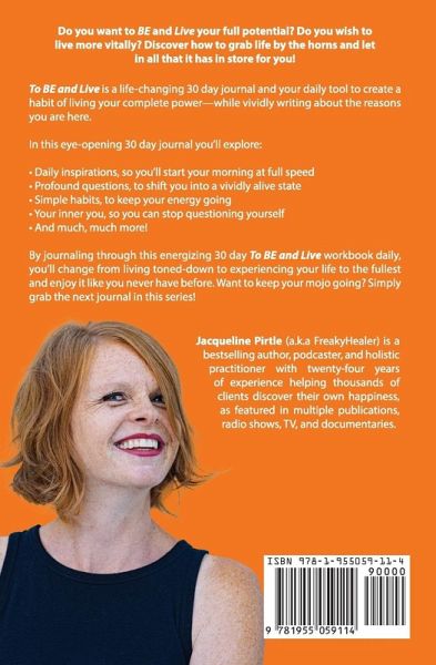 Do you want to BE and Live your full potential? Do wish to live more vitally? Discover how to grab life by the horns and let in all that it has in store for you! Are you wishing for more in life? Do you want to be happier? Are you looking for deeper meaning? Bestselling author, podcaster, and holistic practitioner Jacqueline Pirtle has twenty-four years of practice helping thousands of clients to BE and live more mindfully and consciously--as featured in multiple publications and the documentary The Overly Emotional Child by Learning Success. Now she is here to give you a daily path to achieve a life beyond your dreams. To BE and Live is a life-changing 30 day journal and your daily tool to create a habit of living your complete power--while vividly writing about the reasons you are here. Being and living with excitement changes everything, because you will tap into a limitless amount of energy to create and manifest a life that is truly worth living. Most importantly, it makes you BE and live in a state where bliss is on every day's schedule. By consciously reading, thinking, feeling, and then journaling about the profound questions Jacqueline is asking, you'll shift your feelings and perceptions to a high-for-life frequency where your full capabilities for unlimited health, success, happiness, and abundance exist. And by following the precepts within you can soon enjoy the benefits of better living, because no matter the circumstances, experiencing a beautiful life is for everyone. In this eye-opening 30 day journal you'll explore: Daily inspirations, so you'll start your morning at full speed Profound questions, to shift you into a vividly alive state Simple habits, to keep your energy going Your inner you, so you can stop questioning yourself And much, much more! By journaling through this energizing 30 day To BE and Live workbook daily, you'll change from living toned-down to experiencing your life to the fullest and enjoy it like you never have before. Want to keep your mojo going? Simply grab the next journal in this series! If you like to feel alive, wish for your dreams to come true, and enjoy journaling, then you'll love Jacqueline Pirtle's levitating teachings. Buy this 30 day journal To BE and Live to start enjoying yourself fully today!