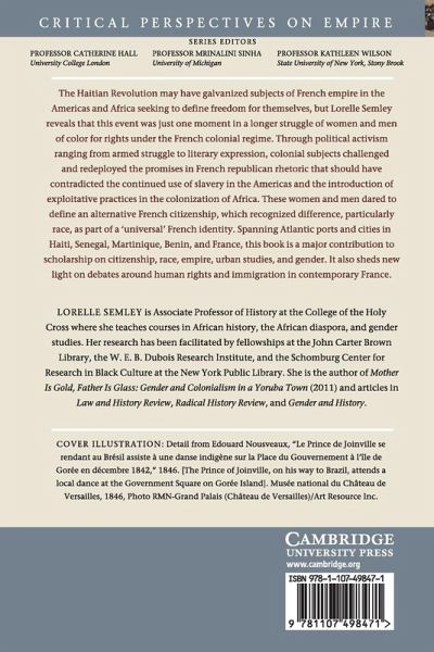 The Haitian Revolution may have galvanized subjects of French empire in the Americas and Africa struggling to define freedom and 'Frenchness' for themselves, but Lorelle Semley reveals that this event was just one moment in a longer struggle of women and men of color for rights under the French colonial regime. Through political activism ranging from armed struggle to literary expression, these colonial subjects challenged and exploited promises in French Republican rhetoric that should have contradicted the continued use of slavery in the Americas and the introduction of exploitative labor in the colonization of Africa. They defined an alternative French citizenship, which recognized difference, particularly race, as part of a 'universal' French identity. Spanning Atlantic port cities in Haiti, Senegal, Martinique, Benin, and France, this book is a major contribution to scholarship on citizenship, race, empire, and gender, and it sheds new light on debates around human rights and immigration in contemporary France.