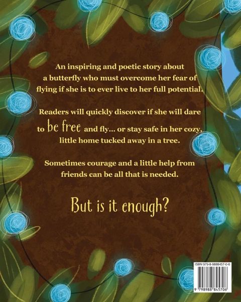 A BUTTERFLY THAT IS AFRAID TO FLY?? IT CANNOT BE!That's exactly how Butterfly's friends, Bee and Ladybug react when they find out she has never used her big, beautiful wings to fly. Instead, she spends her days living in her cozy, little home tucked away in a tree. But Butterfly dreams of spreading her wings and with just a little bit of courage ...Anything is possible!Join Butterfly and her friends on an endearing journey that will determine if she overcomes her fear of flying. A poetic story that is both charming and inspiring, this book will make the perfect gift for a baby shower, birthday, or special occasion for any young child. With a 'This Book Belongs To' page in the front and a page at the end to put the child's picture, it can be personalized for any special little one.It is the perfect message of encouragement for a child who is embarking on something new in life, such as daycare, preschool, kindergarten, extra-curricular activities and more. If you know a child who is afraid to try something new, this book will send a positive message their way!
