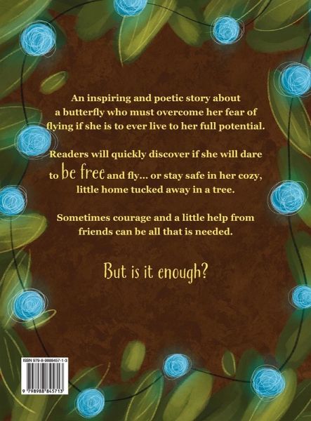 A BUTTERFLY THAT IS AFRAID TO FLY?? IT CANNOT BE! That's exactly how Butterfly's friends, Bee and Ladybug react when they find out she has never used her big, beautiful wings to fly. Instead, she spends her days living in her cozy, little home tucked away in a tree. But Butterfly dreams of spreading her wings and with just a little bit of courage ... Anything is possible! Join Butterfly and her friends on an endearing journey that will determine if she overcomes her fear of flying. A poetic story that is both charming and inspiring, this book will make the perfect gift for a baby shower, birthday, or special occasion for any young child. With a 'This Book Belongs To' page in the front and a page at the end to put the child's picture, it can be personalized for any special little one. It is the perfect message of encouragement for a child who is embarking on something new in life, such as daycare, preschool, kindergarten, extra-curricular activities and more. If you know a child who is afraid to try something new, this book will send a positive message their way!