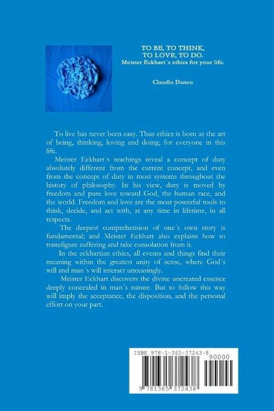 To live has never been easy. Thus ethics is born as the art of being, thinking, loving and doing. Meister Eckhart¿s teachings reveal a concept of duty absolutely different from the current concept, and even from the concept of duty in most systems throughout the history of philosophy. In his view, duty is moved by freedom and pure love toward God, the human race and the world. Freedom and love are the most powerful tools to think, decide, and act with, at any time in lifetime, in all respects. The deepest comprehension of one¿s own story is fundamental, and Meister Eckhart also explains how to transfigure suffering and take consolation from it. In the eckhartian ethics all events and things find their meaning within the greatest unity of sense, where God¿s will and man¿s will interact unceasingly. Meister Eckhart discovers the divine uncreated essence deeply concealed in man¿s nature. But to follow this way will imply the acceptance, the disposition, and the personal effort on your part.