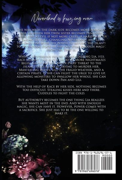 Neverland is freezing over. The war with the dark side becomes more personal for Lia when her twin sister becomes Pan's new queen, just as evil if not more cruel. A harsh winter is taking its toll, changing Neverland; and Lia is the only one with the power to return the island to its natural state-if she can steal enough magic from Pan that is. When a mysterious figure begins stalking Lia, her race against time is cut shorter. More nightmares begin haunting her when every threat to the island takes a stab at trying to murder her. Man-eating beasts, Lili, the frigid weather, and a certain pirate. If she can fight the urge to give up, allowing monsters to swallow her whole, she can take down Pan and Lili. With the help of Kace by her side, nothing becomes too difficult. Stealing kisses here and there. Cuddles to fight the cold. But authority becomes the one thing Lia realizes she wants most in the end. And with enough magic, she can have it. However, power comes with a sacrifice. She just has to be the one willing to make it.