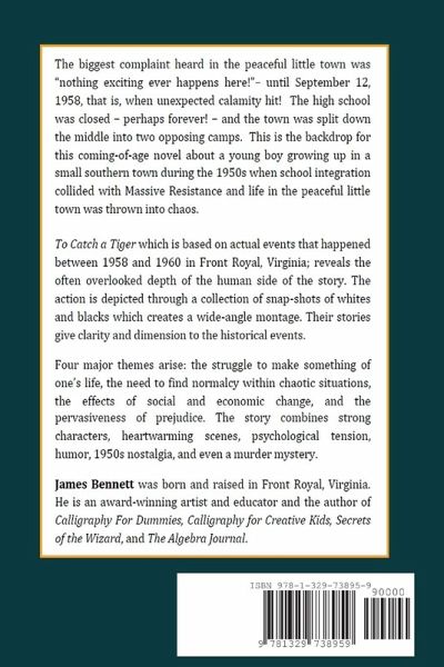 TO CATCH A TIGER is the true story of how racism nearly destroyed a small Southern community. Based on historical events that happened between 1958 and 1960 in Front Royal, Virginia, this autobiographical story follows the lives of two boys, Davey MacLaren, who is white, and Jackie King, who is black. The two are caught up in the calamitous events when their small, Southern community becomes the first place in the nation where the public high school is closed to avoid being integrated. Although the boys' experiences are very different, their dreams and aspirations are similar. Both Davey and Jackie find themselves on perilous paths where they have little control over what will happen to them. This book reveals the depth and complexities of the human side of this civil rights story. The multiple plot lines combine memorable characters, psychological tension, humor, 1950s nostalgia, and even a murder mystery.