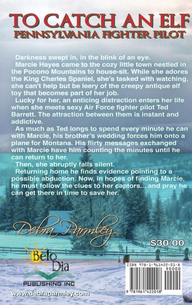 Darkness swept in, in the blink of an eye. Marcie Hayes came to the cozy little town nestled in the Pocono Mountains to house-sit. While she adores the King Charles Spaniel, she's tasked with watching, she can't help but be leery of the creepy antique elf toy that becomes part of her job. Lucky for her, an enticing distraction enters her life when she meets sexy Air Force fighter pilot Ted Barrett. The attraction between them is instant and addictive. As much as Ted longs to spend every minute he can with Marcie, his brother's wedding forces him onto a plane for Montana. His flirty messages exchanged with Marcie have him counting the minutes until he can return to her. Then, she abruptly falls silent. Returning home he finds evidence pointing to a possible abduction. Now, in hopes of finding Marcie, he must follow the clues to her captors... and pray he can get there in time to save her.