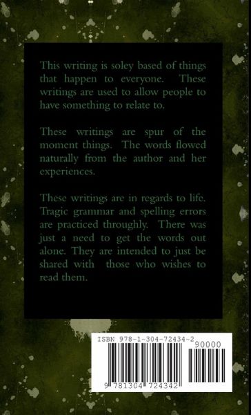 These writings are words from emotions. They are intended to allow someone to relate to them. These words are based off of experiences.