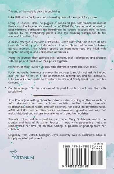 The end of the road is only the beginning. Luke Phillips has finally reached a breaking point at the age of forty-three. Living in Losanti, Ohio, he juggles a dead-end job, self-medicated mental illness, and the lingering shadow of an unfulfilled life. Divorced and haunted by past mistakes, particularly the heartbreak he caused decades ago, he feels trapped by his overbearing parents and the haunting comparison to his successful brother, Trey. A lifeline emerges in the form of Paul Chu, Luke's old friend, whose own life has been shattered by past indiscretions. After a phone call interrupts Luke's darkest moment, their reunion sparks an impromptu road trip filled with laughter, nostalgia, and unexpected adventures. Along the journey, they confront their demons, seek redemption, and grapple with the painful realities of their pasts together. However, as their adventure unfolds, fate delivers a harsh and cruel blow. Facing adversity, Luke must summon the courage to reclaim not just his life but also the love he lost. In a tale of friendship, redemption, and self-discovery, he embarks on a quest to transform his life and finally break free from his demons. Can Luke emerge from the shadows of his past to embrace a future filled with possibility?