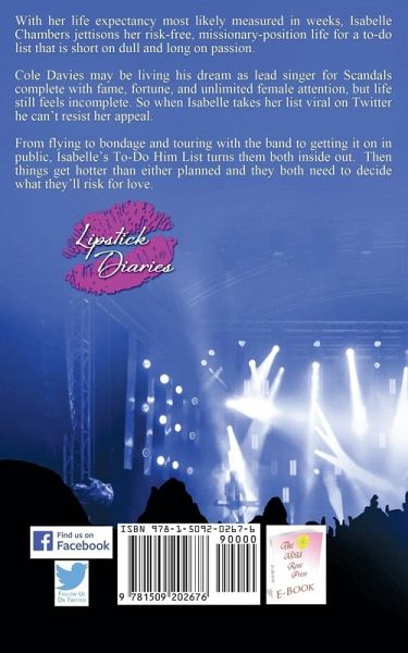 With her life expectancy most likely measured in weeks, Isabelle Chambers jettisons her risk-free, missionary-position life for a to-do list that is short on dull and long on passion. Cole Davies may be living his dream as lead singer for Scandals complete with fame, fortune, and unlimited female attention, but life still feels incomplete. So when Isabelle takes her list viral on Twitter he can't resist her appeal. From flying to bondage and touring with the band to getting it on in public, Isabelle's To-Do Him List turns them both inside out. Then things get hotter than either planned and they both need to decide what they'll risk for love.