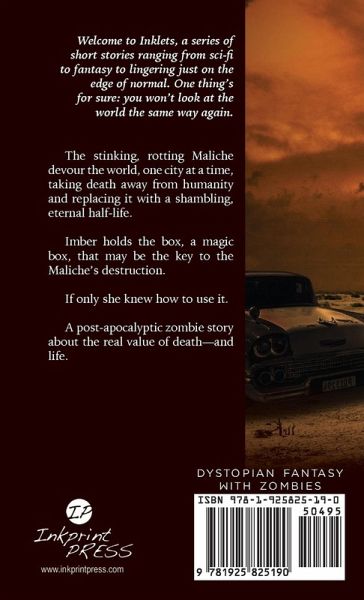 The stinking, rotting Maliche devour the world, one city at a time, taking death away from humanity and replacing it with a shambling, eternal half-life. Imber holds the box, a magic box, that may be the key to the Maliche's destruction. If only she knew how to use it. A post-apocalyptic zombie story about the real value of death-and life. 4100 words / Dystopian Fantasy with Zombies Welcome to Inklets, a series of short (and sometimes short-short) stories ranging from sci-fi to fantasy to lingering just on the edge of normal. One thing's for sure: you won't look at the world the same way again.