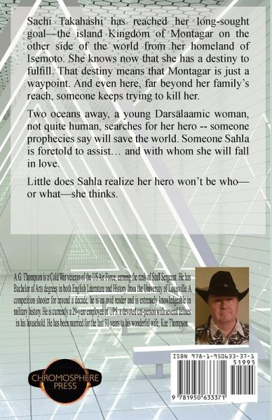 Sachi Takahashi has reached her long-sought goal-the island Kingdom of Montagar on the other side of the world from her homeland of Isemoto. She knows now that she has a destiny to fulfill. That destiny means that Montagar is just a waypoint. And even here, far beyond her family's reach, someone keeps trying to kill her. Two oceans away, a young Darsälaamic woman, not quite human, searches for her hero-someone prophecies say will save the world. Someone Sahla is foretold to assist... and with whom she will fall in love. Little does Sahla realize her hero won't be who-or what-she thinks.