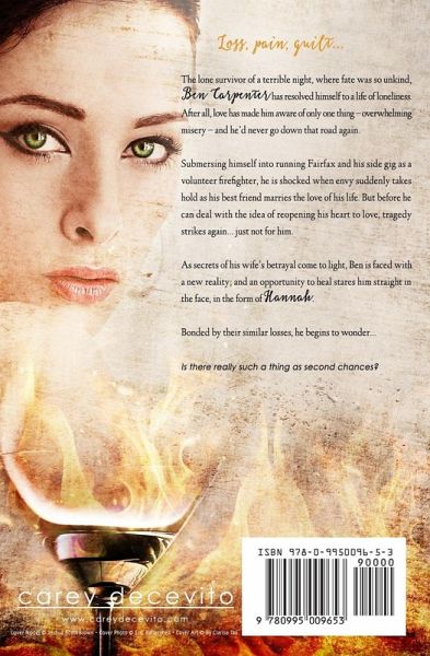 Loss, pain, guilt… The lone survivor of a terrible night, where fate was so unkind, Ben Carpenter has resolved himself to a life of loneliness. After all, love has made him aware of only one thing - overwhelming misery - and he'd never go down that road again. Submersing himself into running Fairfax and his side gig as a volunteer firefighter, he is shocked when envy suddenly takes hold as his best friend marries the love of his life. But before he can deal with the idea of reopening his heart to love, tragedy strikes again… just not for him. As secrets of his wife's betrayal come to light, Ben is faced with a new reality; and an opportunity to heal stares him straight in the face, in the form of Hannah. Bonded by their similar losses, he begins to wonder… Is there really such a thing as second chances?