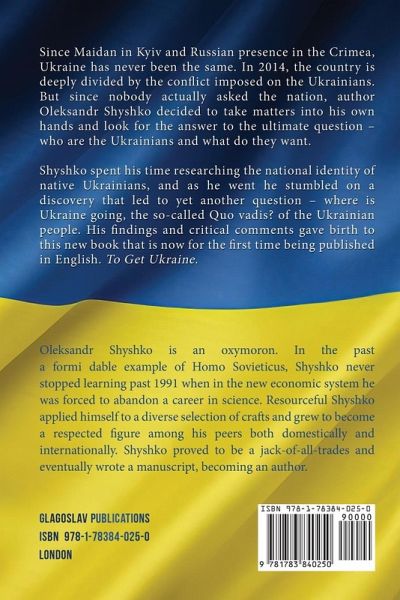 Since Maidan in Kyiv and Russian presence in the Crimea, Ukraine has never been the same. In 2014, the country is deeply divided by the conflict imposed on the Ukrainians. But since nobody actually asked the nation, author Oleksandr Shyshko decided to take matters into his own hands and look for the answer to the ultimate question - who are the Ukrainians and what do they want. Shyshko spent his time researching the national identity of native Ukrainians, and as he went he stumbled on a discovery that led to yet another question - where is Ukraine going, the so-called Quo vadis? of the Ukrainian people. His findings and critical comments gave birth to this new book that is now for the first time being published in English. To Get Ukraine. *** Oleksandr Shyshko is an oxymoron. In the past a formidable example of Homo Sovieticus, Shyshko never stopped learning past 1991 when in the new economic system he was forced to abandon a career in science. Resourceful Shyshko applied himself to a diverse selection of crafts and grew to become a respected figure among his peers both domestically and internationally. Shyshko proved to be a jack-of-all-trades and eventually wrote a manuscript, becoming an author.