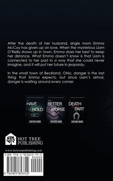 After the death of her husband, single mom Emma McCoy has given up on love. When the mysterious Liam O’Reilly shows up in town, Emma does her best to keep her distance. What Emma doesn’t know is that Liam is connected to her past in a way that she could never imagine, and it will put her future in jeopardy. In the small town of Beckland, Ohio, danger is the last thing that Emma expects, but since Liam’s arrival, danger is waiting around every corner. Book 1 of 3 in Heidi Renee Mason’s romantic suspense trilogy, The Vows. This is not a stand-alone romance.