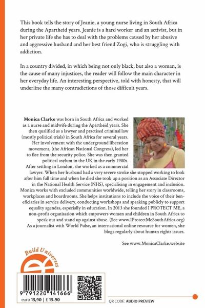 This book tells the story of Jeanie, a young nurse living in South Africa during the Apartheid years. Jeanie is a hard worker and an activist, but in her private life she has to deal with the problems caused by her abusive and aggressive husband and her best friend Zogi, who is struggling with addiction. In a country divided, in which being not only black, but also a woman, is the cause of many injustices, the reader will follow the main character in her everyday life. An interesting perspective, told with honesty, that will underline the many contradictions of those difficult years. Monica Clarke was born in South Africa and worked as a nurse and midwife during the Apartheid years. She then qualified as a lawyer and practised criminal law (mostly political trials) in South Africa for several years. Her involvement with the underground liberation movement, (the African National Congress), led her to flee from the security police. She was then granted political asylum in the UK in the early 1980s. After settling in London, she worked as a commercial lawyer. When her husband had a very severe stroke she stopped working to look after him full time and when he died she took up a position as an Associate Director in the National Health Service (NHS), specialising in engagement and inclusion. Monica works with excluded communities worldwide, telling her story in classrooms, workplaces and boardrooms. She helps institutions to include the voice of their beneficiaries in service delivery, conducting workshops and speaking publicly to support equality agendas, especially in education. In 2013 she founded I PROTECT ME, a non-profit organisation which empowers women and children in South Africa to speak out and stand up against abuse. (See www.IProtectMeSouthAfrica.org) As a journalist with World Pulse, an international online resource for women, she blogs regularly about human rights issues.