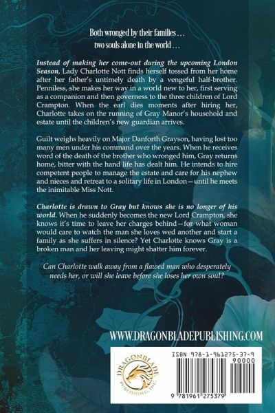 Both wronged by their families . . . two souls alone in the world . . . Instead of making her come-out during the upcoming London Season, Lady Charlotte Nott finds herself tossed from her home after her father's untimely death by a vengeful half-brother. Penniless, she makes her way in a world new to her, first serving as a companion and then governess to the three children of Lord Crampton. When the earl dies moments after hiring her, Charlotte takes on the running of Gray Manor's household and estate until the children's new guardian arrives. Guilt weighs heavily on Major Danforth Grayson, having lost too many men under his command over the years. When he receives word of the death of the brother who wronged him, Gray returns home, bitter with the hand life has dealt him. He intends to hire competent people to manage the estate and care for his nephew and nieces and retreat to a solitary life in London-until he meets the inimitable Miss Nott. Charlotte is drawn to Gray but knows she is no longer of his world. When he suddenly becomes the new Lord Crampton, she knows it's time to leave her charges behind-for what woman would care to watch the man she loves wed another and start a family as she suffers in silence? Yet Charlotte knows Gray is a broken man and her leaving might shatter him forever. Can Charlotte walk away from a flawed man who desperately needs her, or will she leave before she loses her own soul? Find the answer in bestselling author Alexa Aston's first book of Soldiers and Soulmates, To Heal an Earl. Each book in Soldiers and Soulmates is a standalone story that can be enjoyed out of order. Soldiers and Soulmates Book #1: To Heal an Earl Book #2: To Tame a Rogue Book #3: To Trust a Duke Book #4: To Save a Love Book #5: To Win a Widow